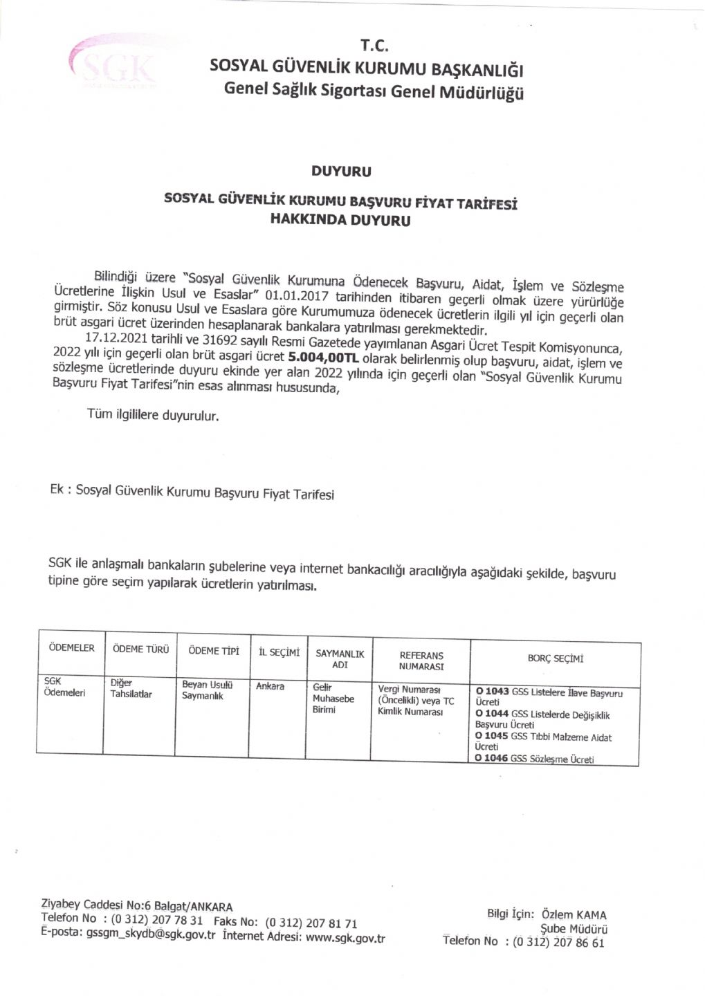 01/02/2022 tarihine kadar yatırılması ve sözleşme ücretinin ödendiğine ilişkin dekontu 01.02.2022 tarihi mesai saati bitimine kadar sözleşme işlemlerinin yürütüldüğü sosyal güvenlik il müdürlüğüne veya ilgili sağlık sosyal güvenlik merkez müdürlüğüne iletmeleri gerekmekte olup bu süre sonunda dekontu teslim etmeleri gerekmektedir.
