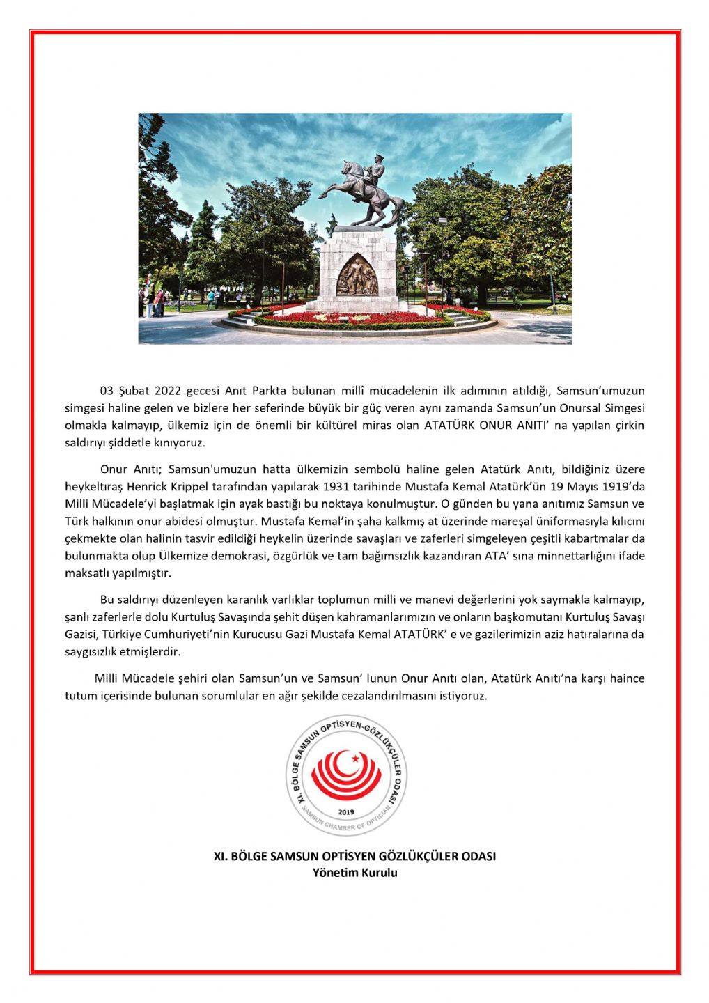 Atatürk Onur Anıtı ’na Yapılan Çirkin Saldırıyı Şiddetle Kınıyoruz!